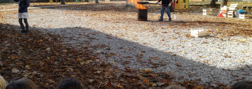 Abbiamo preparato, con l’aiuto delle maestre, delle ghirlande con tutti i frutti della terra di questo periodo dell’anno, che abbiamo indossato per questa occasione speciale. Dopo un momento iniziale di canti e balli con i bambini più grandi del nido integrato e le loro educatrici, siamo usciti in cortile dove il signor Francesco aveva preparato il bidone con il fuoco e la legna per arrostire un delizioso frutto di questa stagione: le castagne.