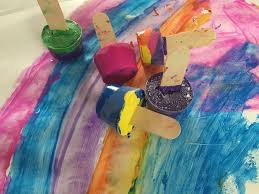 Preparazione: prendete degli stampi da ghiaccio e riempiteli con acqua e colori a tempera o coloranti alimentari. Se li avete, potete aggiungere degli stecchini da gelato. Mettete in freezer finché non si saranno solidificati.